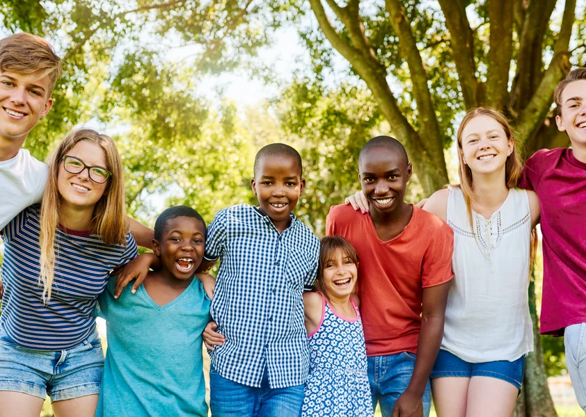 Groupe d'élèves de différentes ethnies souriants